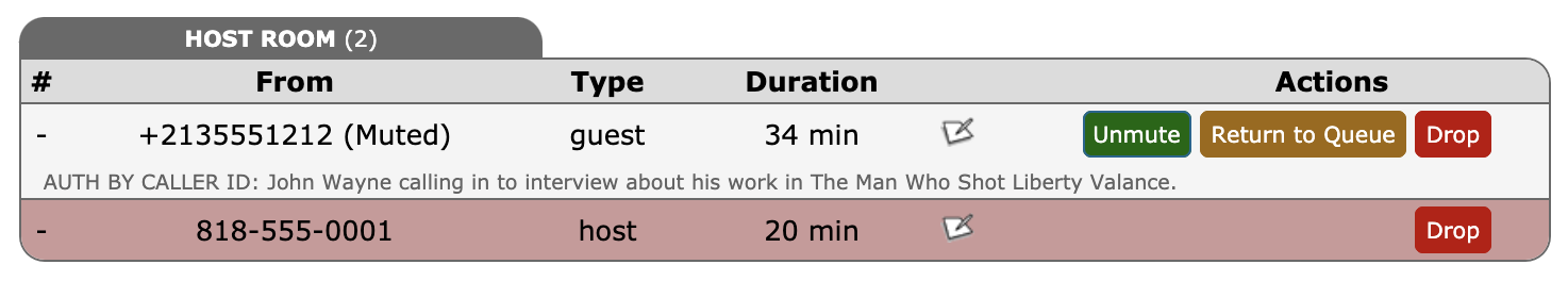 PLEASE NOTE: Authorized callers must call your call-in line to be authenticated, and will automatically be place into your session when it is accepting calls. This is different from guests calling your specific Guest Line or hosts calling the Host/Call Screener line.